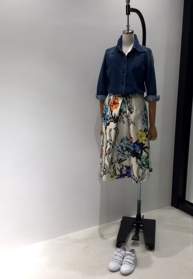 雲のプリントがポップなコットンワンピースはシルエットがとても可愛いです。
