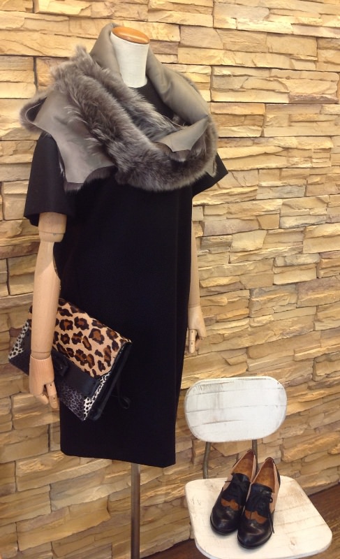 マニッシュなフォルムにレオパード柄のカーフヘアのシューズ。シンプルなコーディネートのスパイスに。