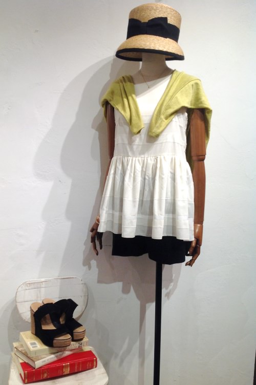シャルルらしいペプラム裾のトップスは程よいギャザーのボリューム感。