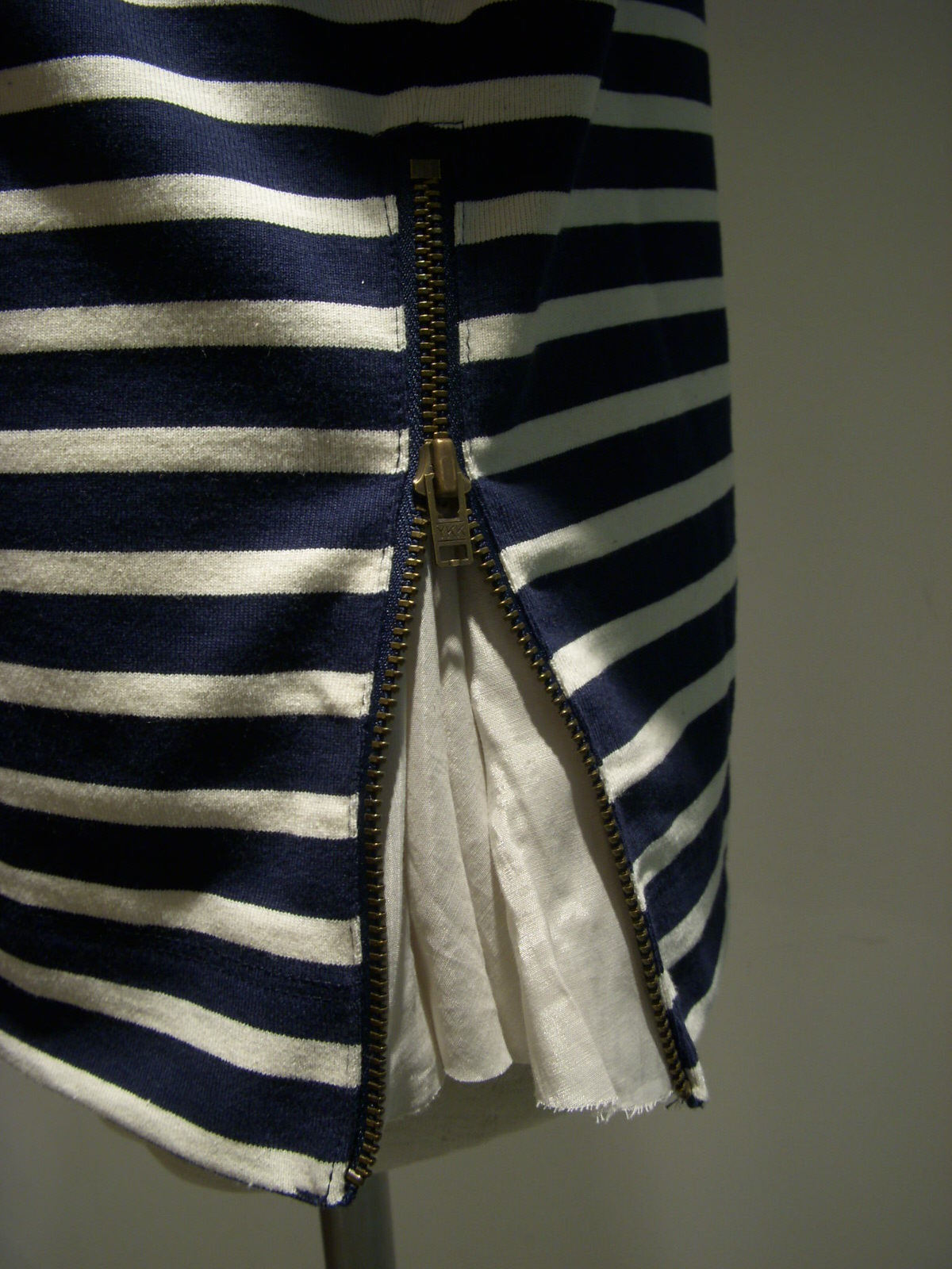 サイドのジップを開けると・・・・・、中から布帛が出てシルエットが変ります。