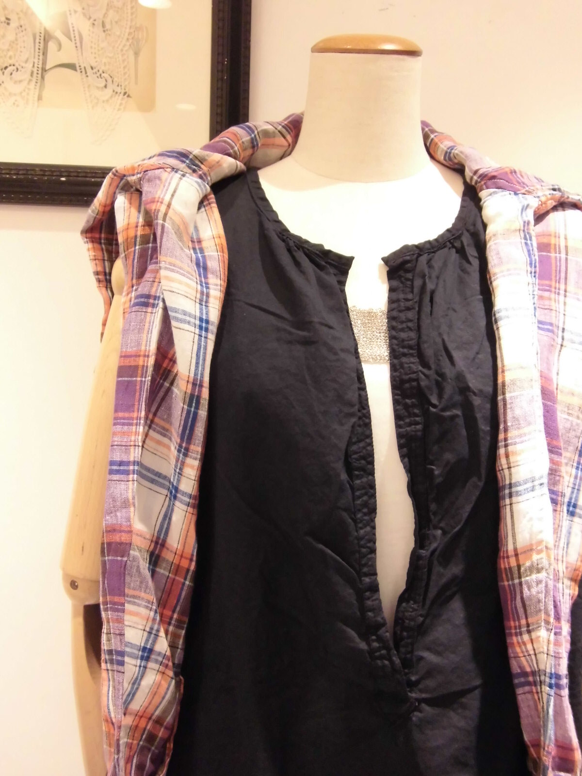 ○リネンチェックシャツ