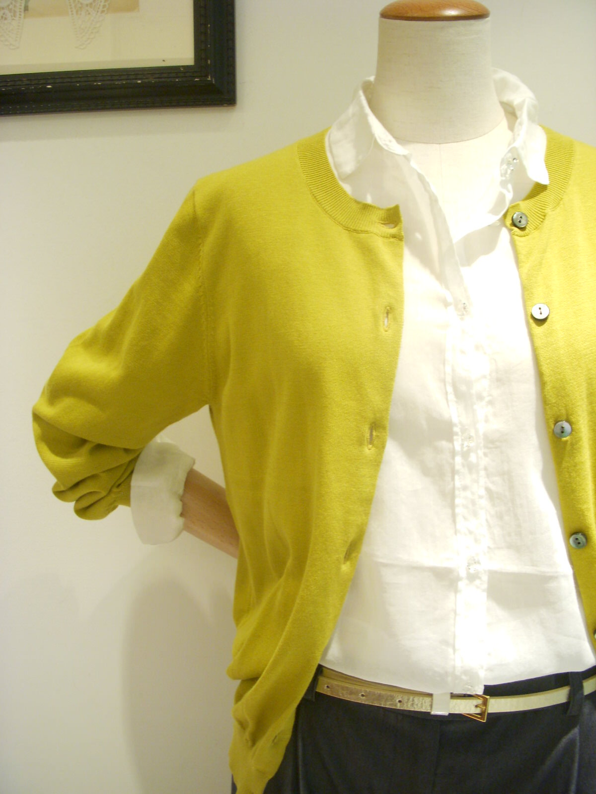 モノトーンでまとめがちなスタイリングにカーディガンで色を差して・・・