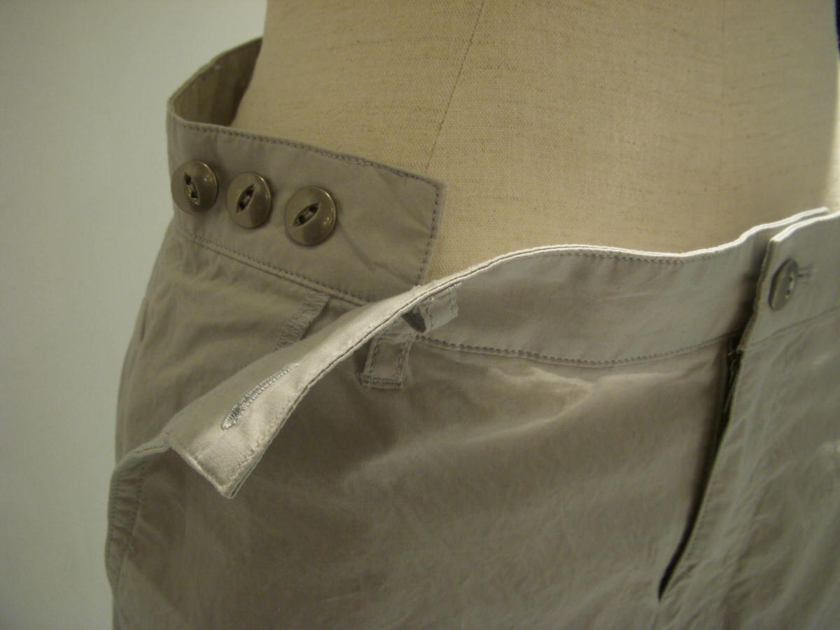 色ベルトを合わせると、とっても可愛いですよ~。 ウエスト部分はボタンで3段階に調節出来ます☆ なじみの良いライトベージュ・グレー、すっきりまとまるネイビーの3色展開です。