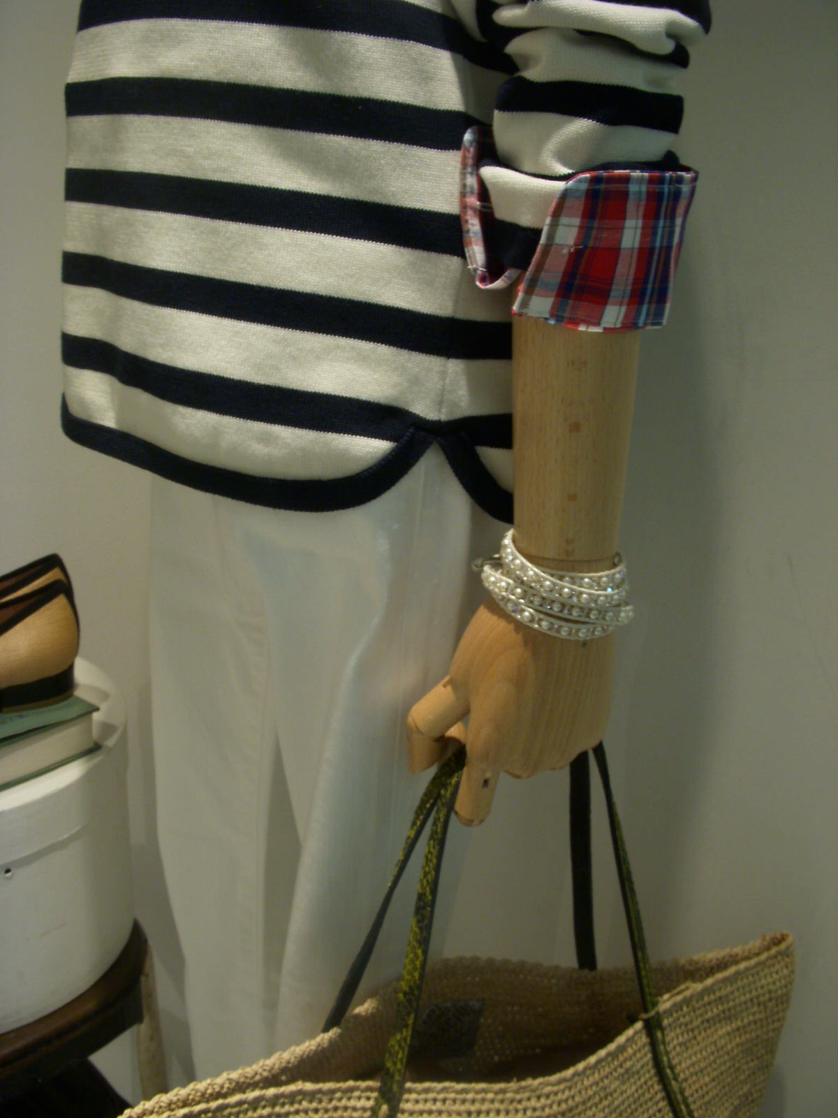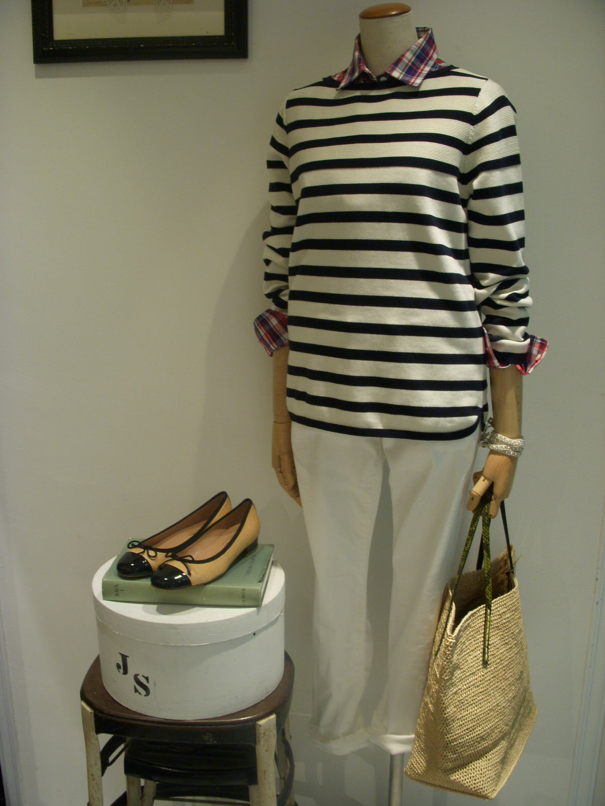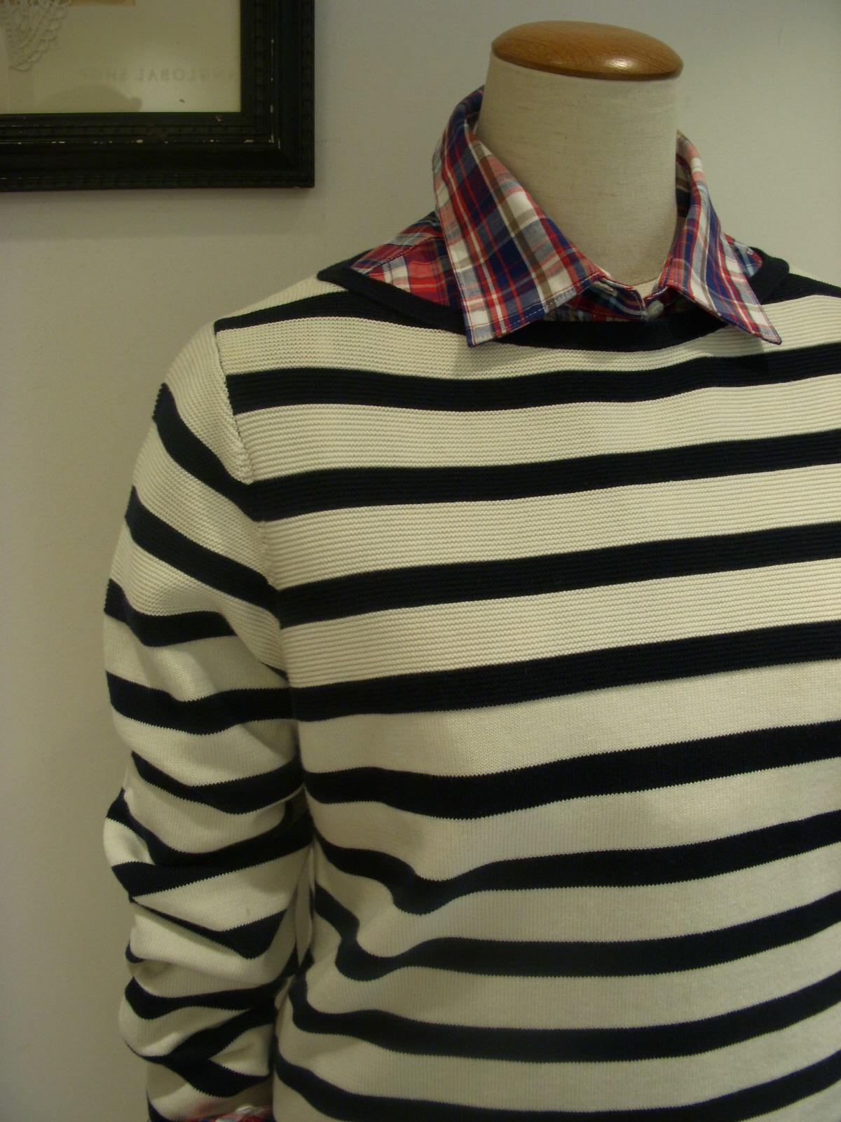 ボーダー×チェックシャツの柄物コーデに☆