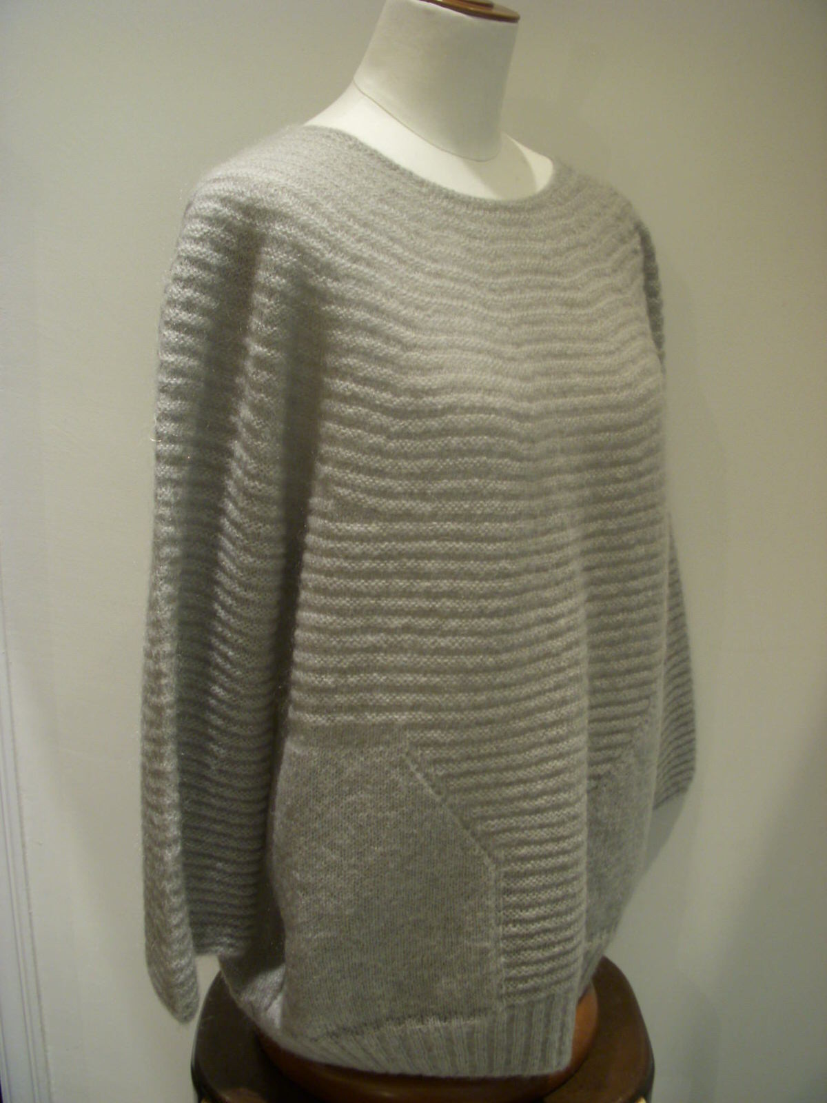 襟空きがとても上品なふんわりニット。シャツINにもピッタリです。