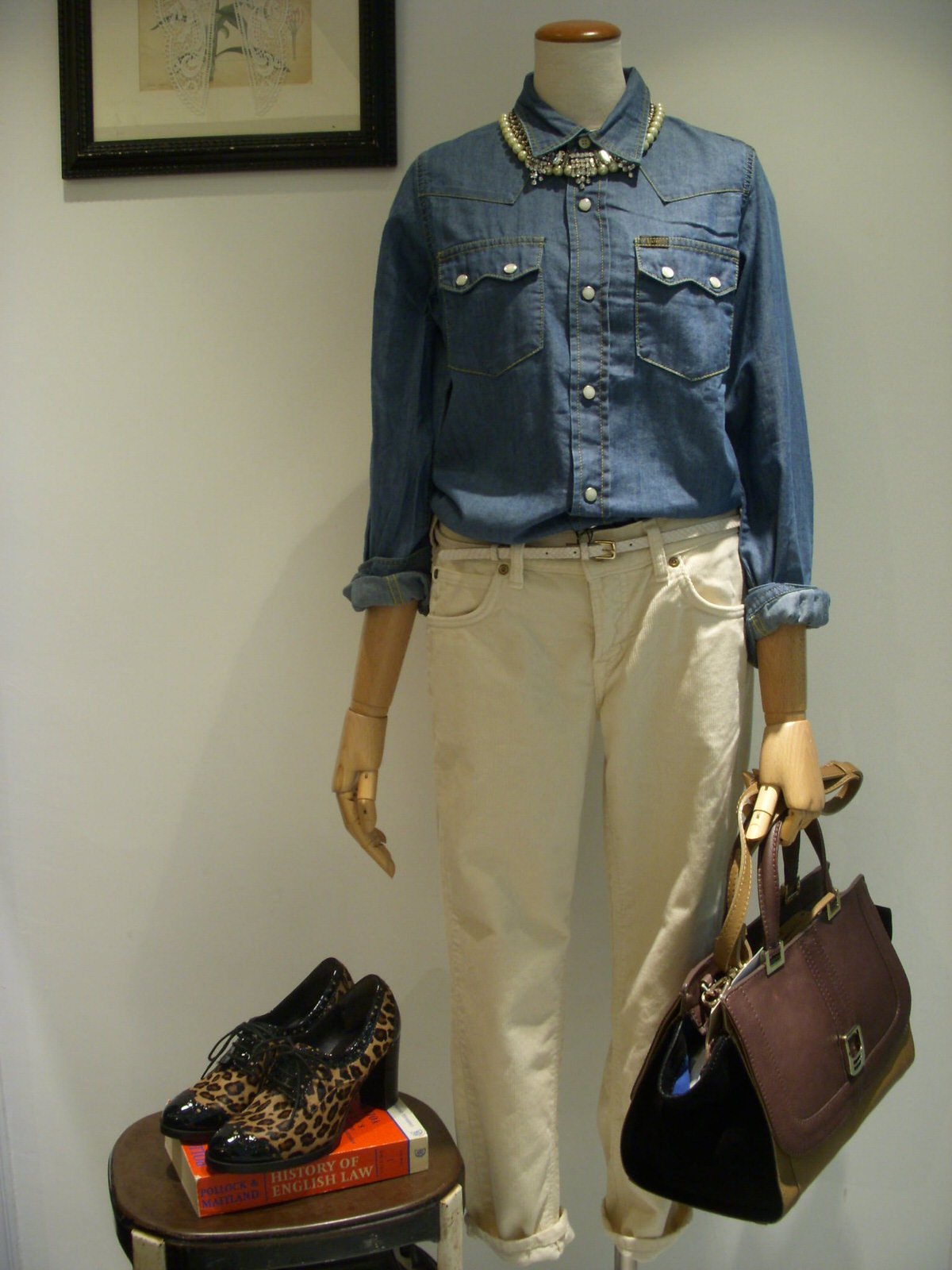 少しカジュアルにラインのキレイなデニムシャツと合わせて秋のレジャーやお出掛けに!