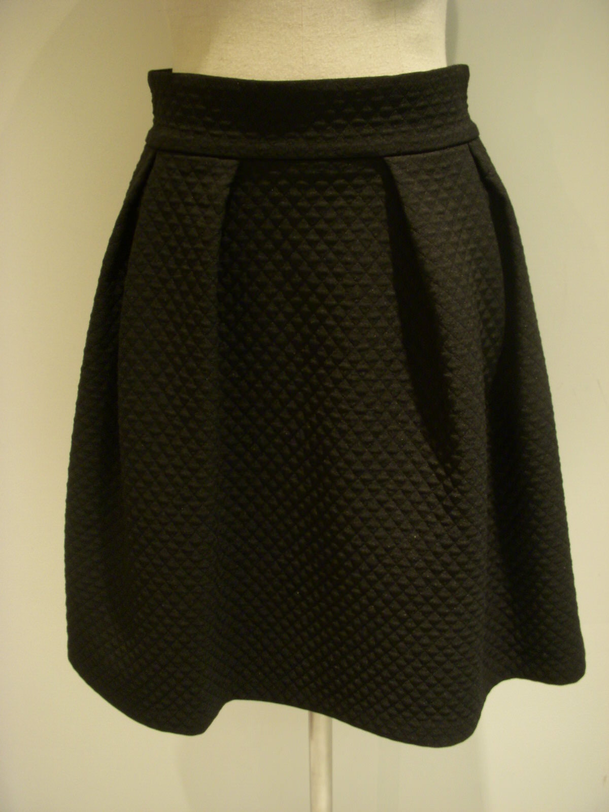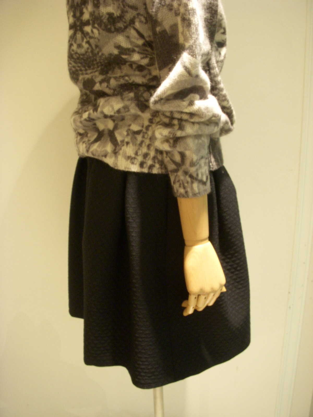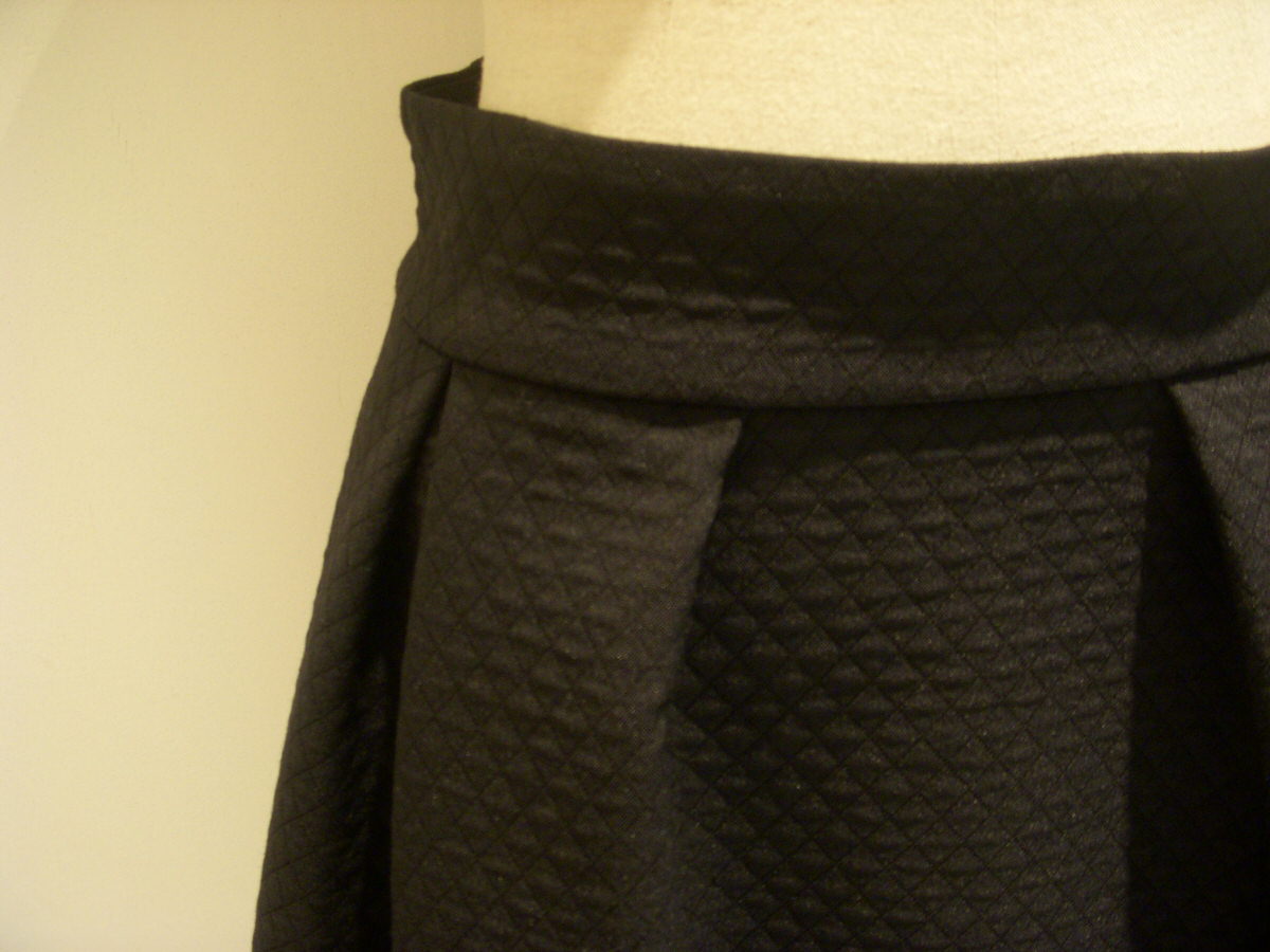 ジャストウエストで履けるフレアスカート。ダイヤ型のジャガード生地がさりげなくオシャレですよ♪