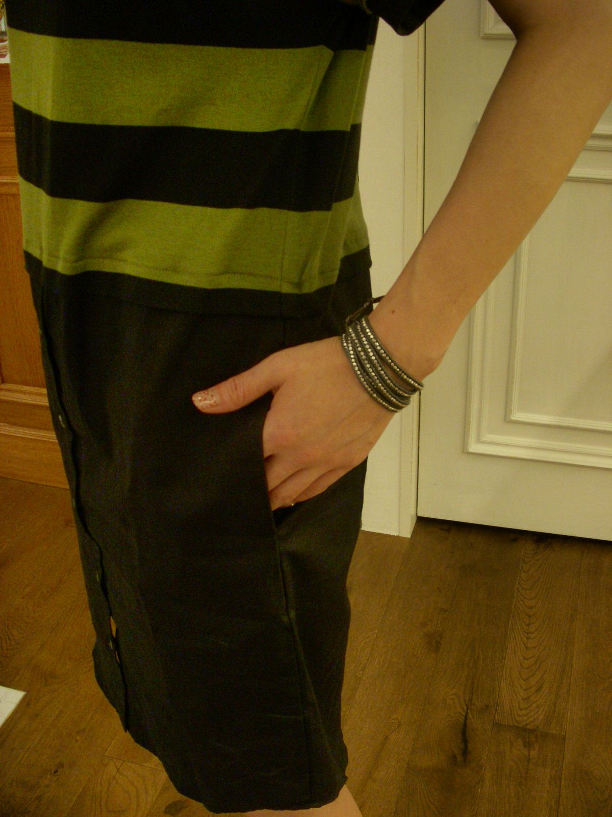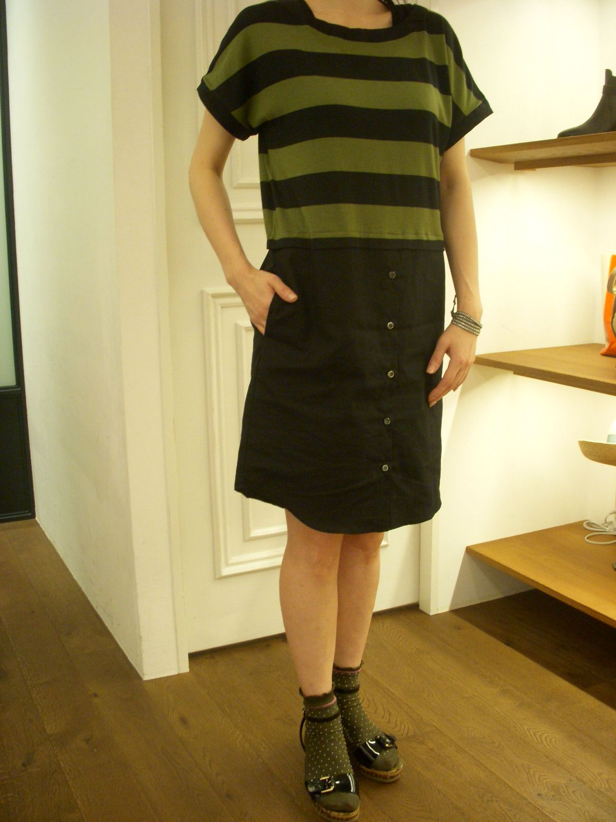 身頃がカットソー地でスカート部分がシャツ生地なのでリラックス感もありながらキレイなシルエットが◎