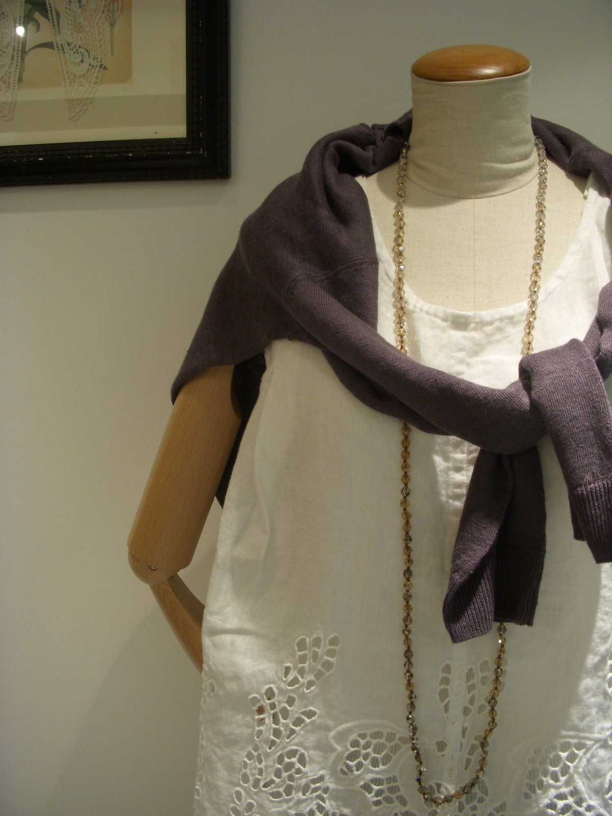 柔らかな着心地が特徴の上質なリネン素材を使用し甘さを抑えた品のあるオリジナルのカットワークレース。