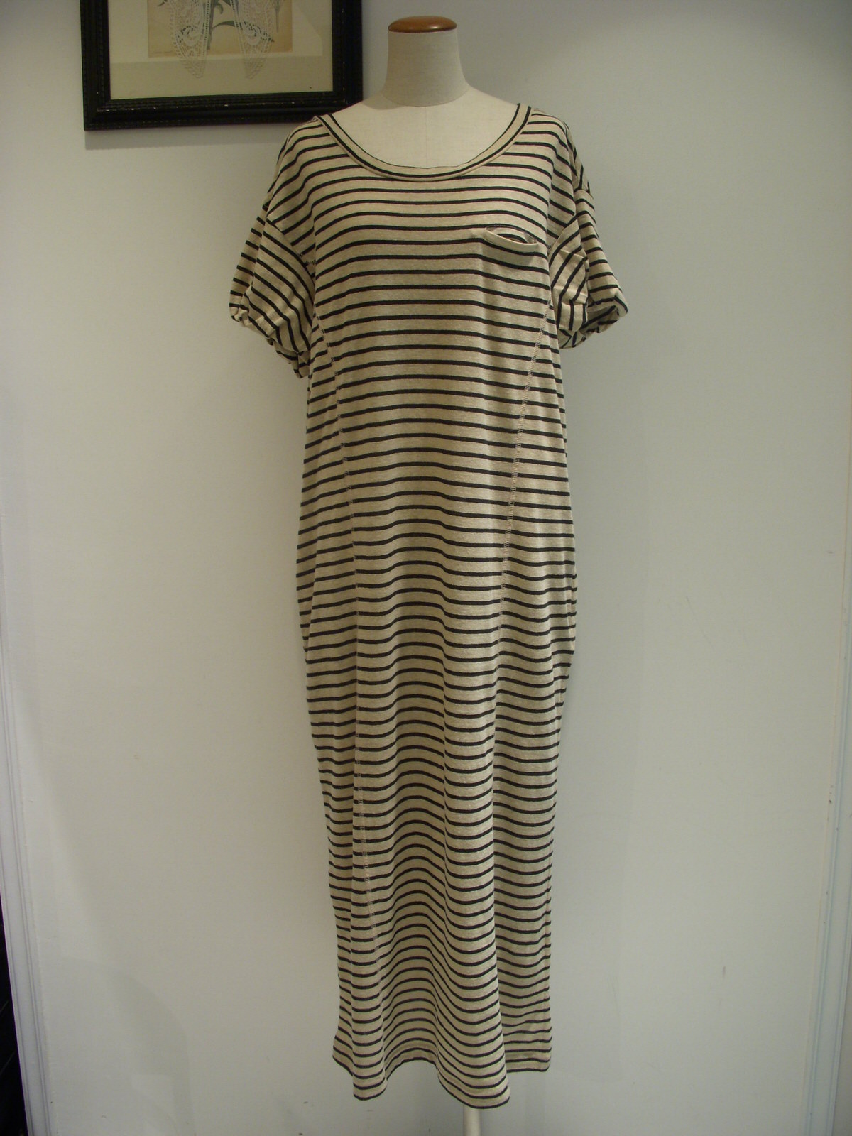 ボーダー柄のボトムスと合わせたソフトマリンなスタイルです。