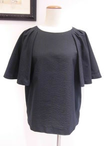 脇部分の分量を減らし、タックギャザーでも腰の張り感を抑えた仕上がりに