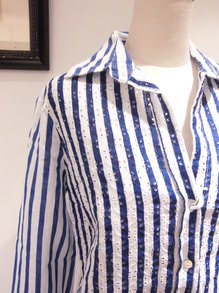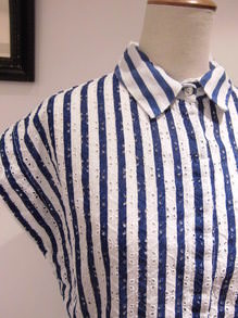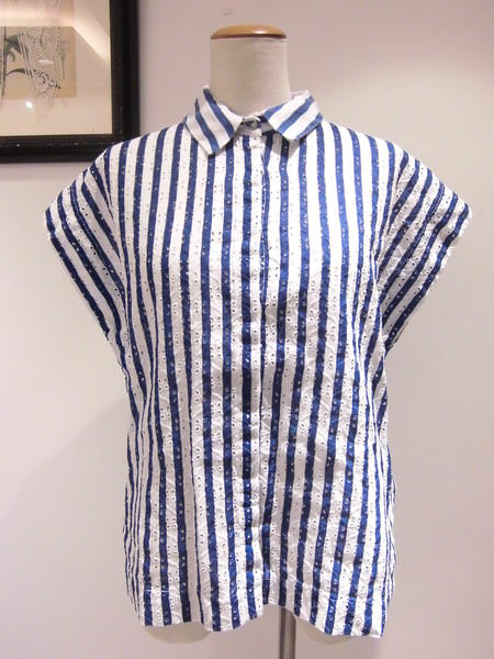 コンパクトな襟が上品な大人マリンスタイルを演出。